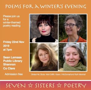 Hope some of you can join four of the seven sisters for an evening of poetry next Friday in the library in Shannon. Readings kick off at 7pm.